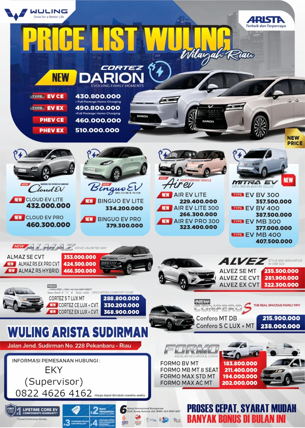 Daftar Harga Mobil Wuling 2026 Wilayah Pekanbaru dan Sekitarnya WULING MOTORS Drive For A Better Life